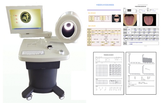 在特定的光源环境下,采用单反相机获得患者舌像信息,运用国际照明委员会(CIE)色差公式和支持向量机(SVM)、动态形状模型(ASM)等多项成熟先进技术,对舌体图像的颜色、纹理、轮廓进行特征提取,将这些特征值与特征数据库中的阈值进行比对,给出舌象分析结果。