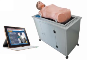 平板电脑作为无线控制终端,通过wifi对穿刺模拟人进行自动体位变换,可以控制模型坐起、翻身,实现。可进行胸腔穿刺术、腹腔穿刺术、腰椎穿刺术、心包穿刺术、骨髓穿刺术及胸腹部叩诊技能训练、术前无菌术训练。实验台可进行体位调整。