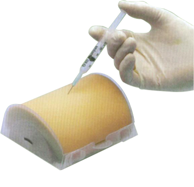 采用进口塑胶材料,皮肤柔软有弹性,配有布质松紧带,可以穿戴在病人身体的特定部位,如腹部、大腿、上臂等,进行胰岛素药物的自我注射,长度和紧度可以调节。模块的厚度可以允许使用不同规格的注射器进行穿刺,背面配有硬质板,可以防止出现注射练习时模块扎穿的情况。